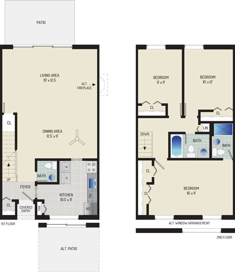4 BR + 2.5 BA Townhome 4 Beds 2.5 Baths 1450 - 1615 sqft $2,898 per month 1 Unit Available View Details